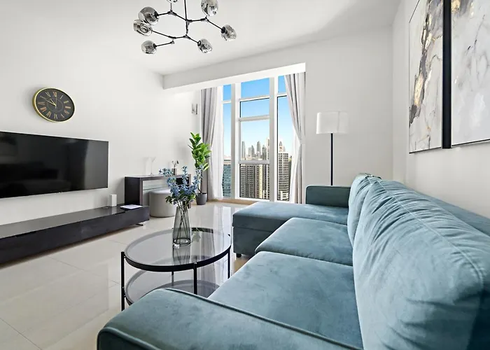 Das 104 m^2 große Large 1 Bedroom Duplex With Lake View Dubai befindet sich im Bezirk Strand & Küste von Dubai, 5 Gehminuten von der U-Bahn-Station Jumeirah Lake Towers entfernt.
